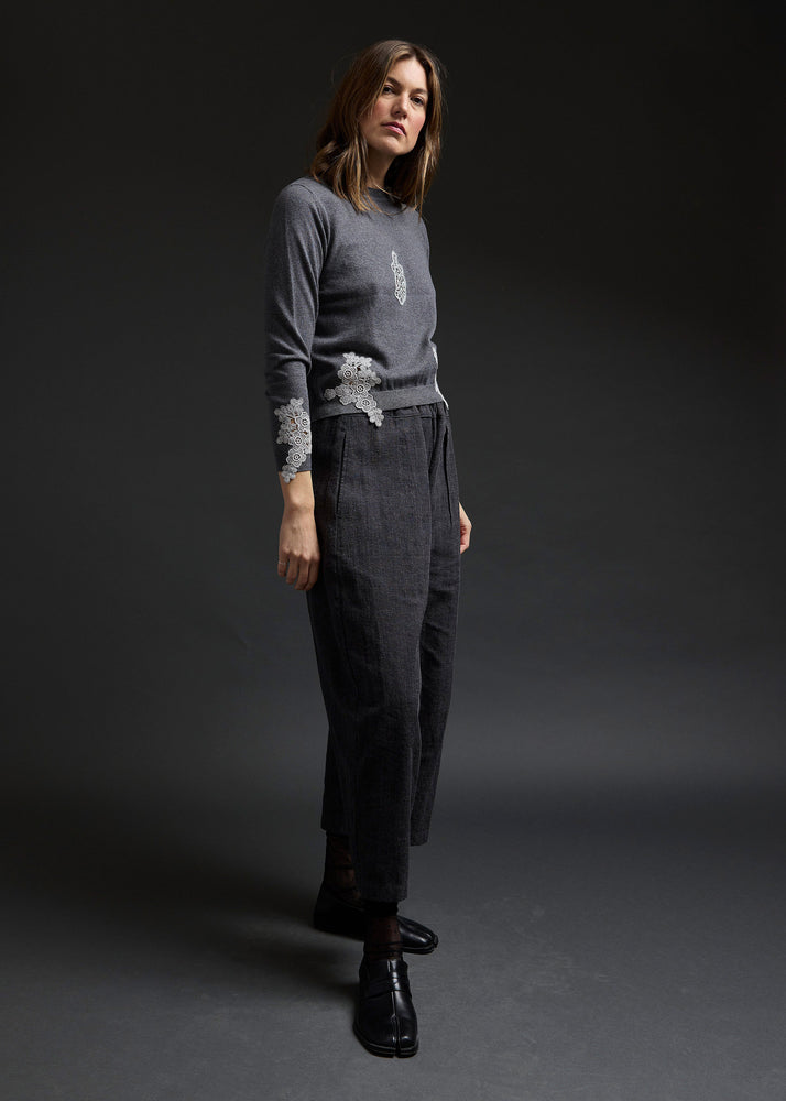 Charcoal Lace Cutout Sweater