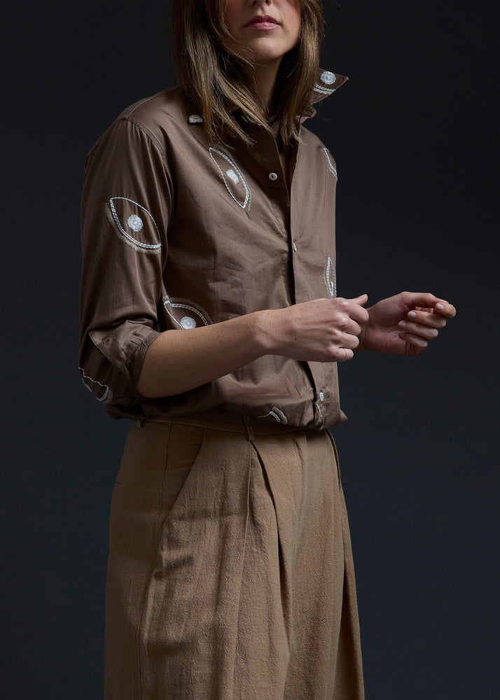 White Eyes Embroidery Long Shirt
