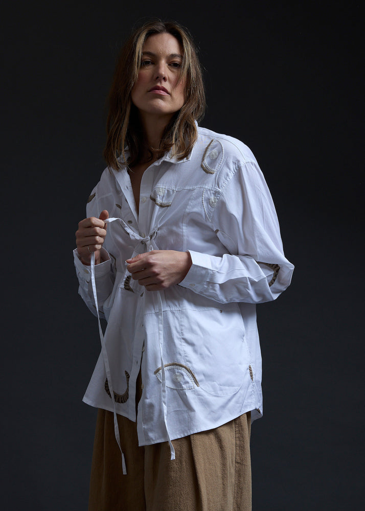White Mixed Stitches Embroidery Shirt